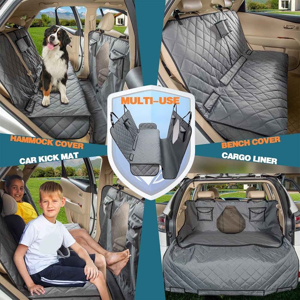 ALL COVERD BACK SEAT COVER: Waterproof and nonslip dog car seat cover with hammock. Protect your entire back seat, floor and the back of front seats from water, scratching, dirt and hair