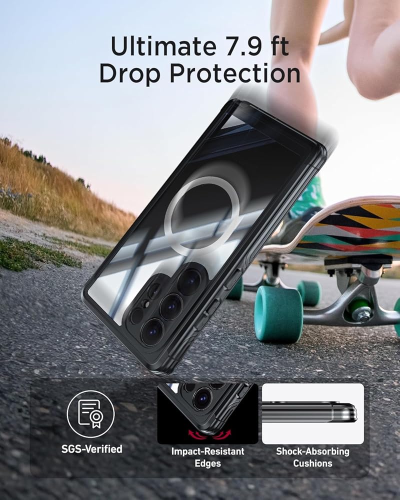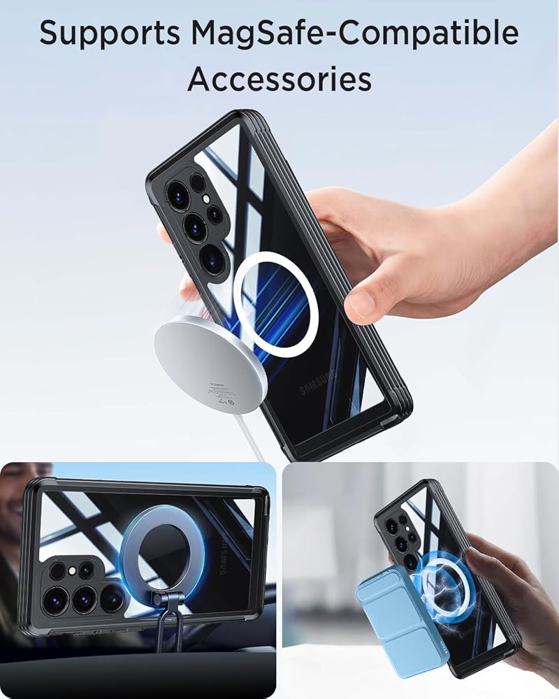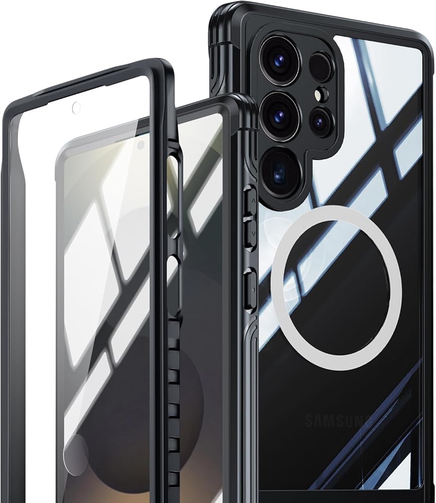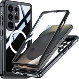 Miimall Strong Magnetic for Samsung Galaxy S25 Ultra Case,[Built-in Glass Screen Protector][Compatible with Magsafe][Military Shockproof Dropproof]Full Heavy Duty Phone Case for S25Ultra, Black/Clear