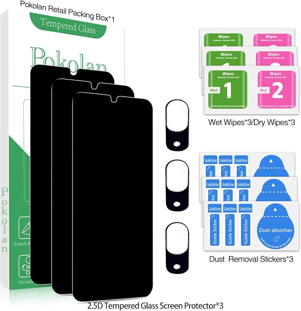 Package & After-Sales Service: You will receive 3x 0.33mm privacy tempered glass screen protectors, 3x Camera Lens Tempered Glass Specially Designed, 3x cleaning tools, 3x dust removal stickers. If you have any questions, you can email us through Amazon message center, we will provide you with satisfactory service