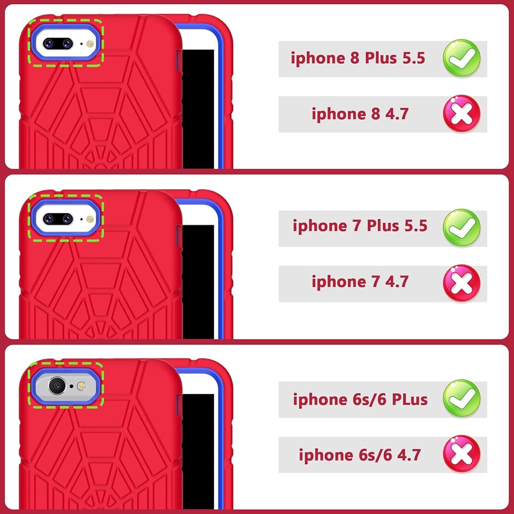 Grifobes 5.5" Case for iPhone 8 Plus/iPhone 7 Plus/iPhone 6S Plus/iPhone 6 Plus, 3-in-1 Heavy Duty Shockproof Rugged Protective 5.5 inch i Phone 8+/7+/6s+/6+ Cover for Kids Boys Children (Red+Blue)