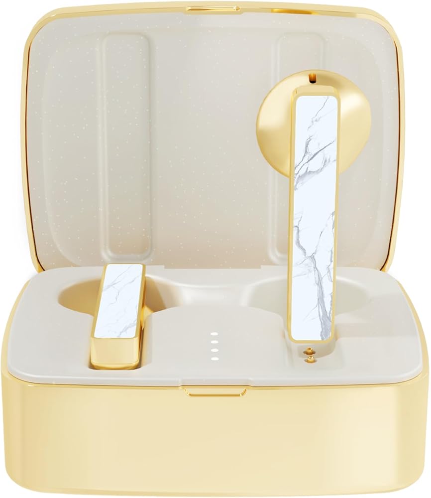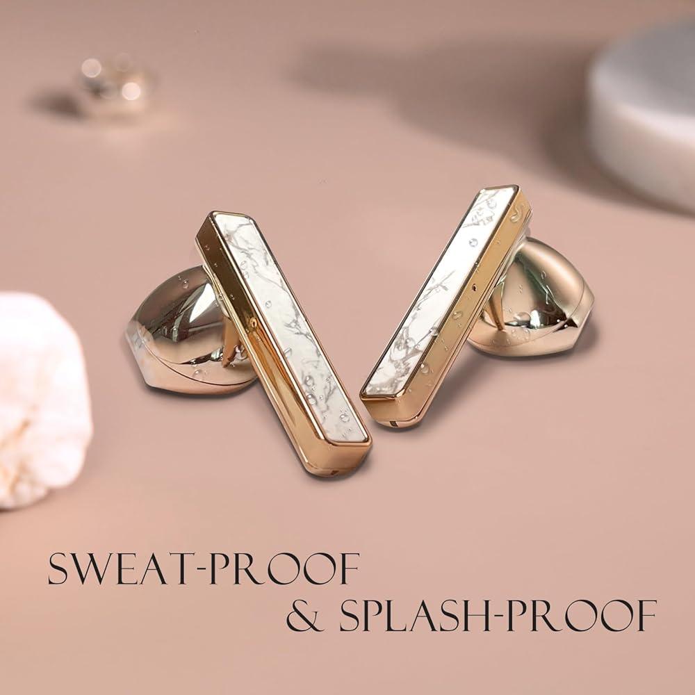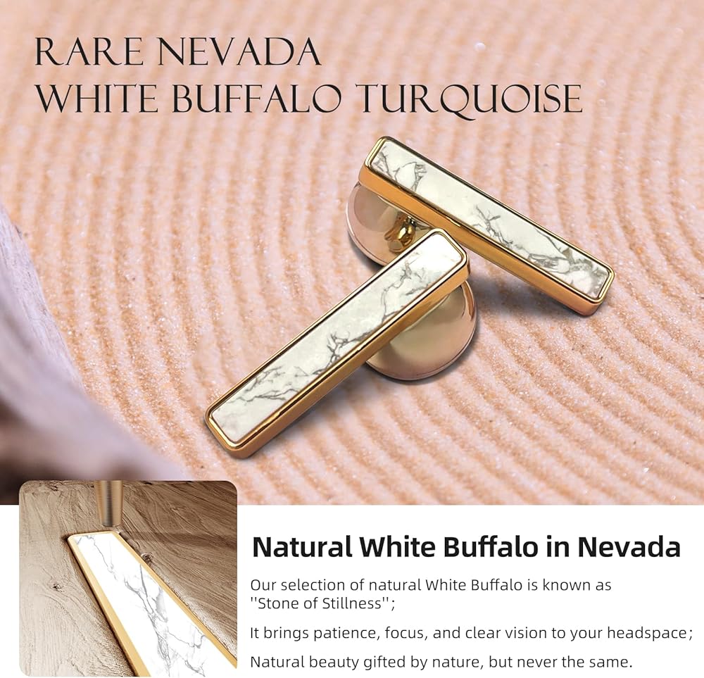 Unprecedented Materials & Craftsmanship - Wireless earbuds use of Rare White Buffalo Turquoise, sacred stones of the ancient tribes.; 360 hour handmade jeweelry and gold vacuum plating process, ear buds more noblea and soft more like the best earring.