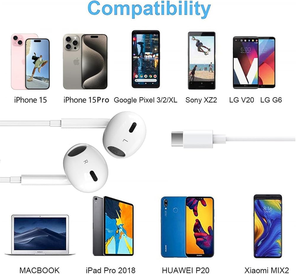 ♫【Wide Compatibility】 USB C Earphone for iPhone 15/15Plus/15Pro/15 Pro Max. USB C Earphone for iPad Pro 2020 2021, for iPad Air 4th 2022, for iPad Mini 6th (2021), for MacBook/MacBook Pro, for Samsung Galaxy S21 FE/ S21/ S21 Plus/ S21 Ultra/ S20 FE/ S20/ S20 Plus/ S20 Ultra/ Note 20/ 20 Ultra/ 10/ 10 Plus Galaxy Z fold / flip 3/ S22/ S22+/ S22 Ultra/ A53/ A33/ Galaxy Tab S8+ 5G, Google Pixel 6 6 Pro 5 4a 3a XL 4 XL 3 2 XL,other devices with USB C audio port.