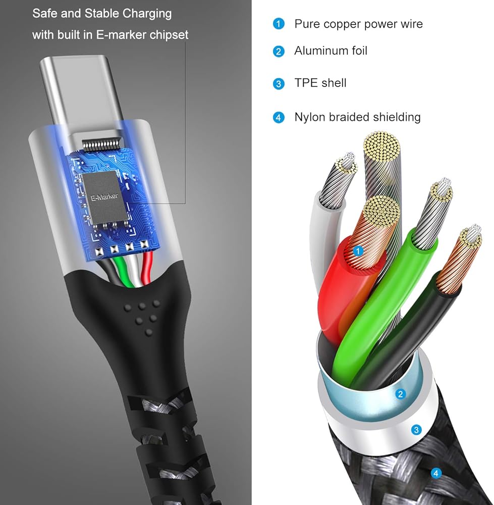 【Safety and Stable】Built in the electronically marked chipset (E-Marker) in order that power delivery detects the connected device for safely charge. Our Fasgear USB Type C to Type C 2.0 Cable supports data transfer rates up to 480 Mbps. It is safety, intelligent and stabilizing USB C-C cable.【Note】 Do Not support video transfer.