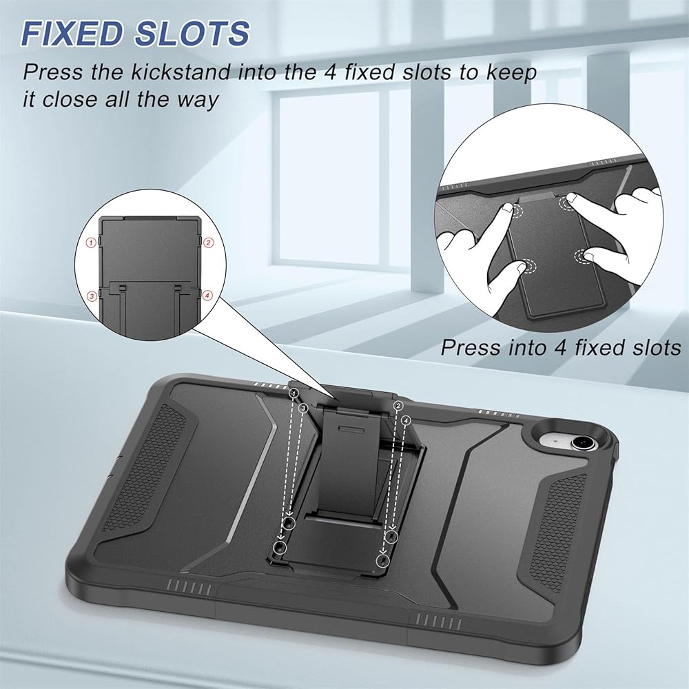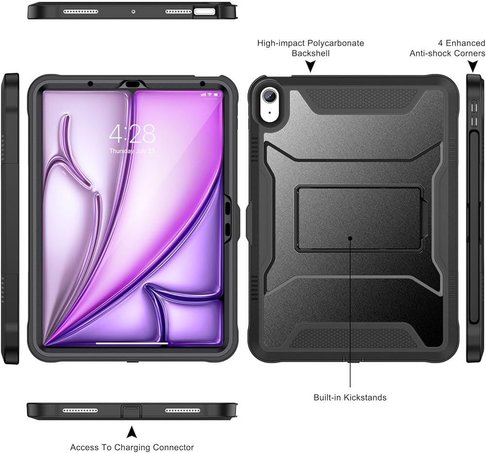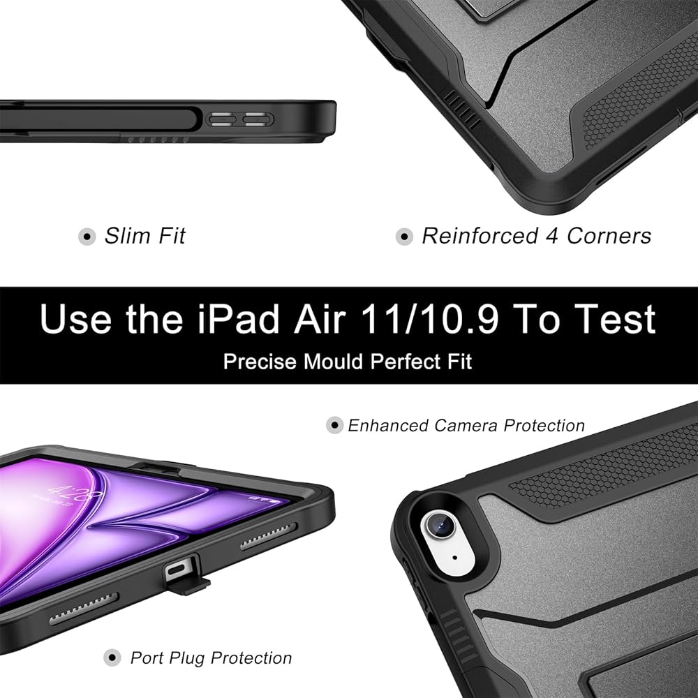 【Rugged Armor Shockproof Protection】Multi-layered hard PC back and flexible TPU bumper provide your iPad Air 11 and iPad Air 5/4 strong protection against drops,bumps, and impacts, also easy to install