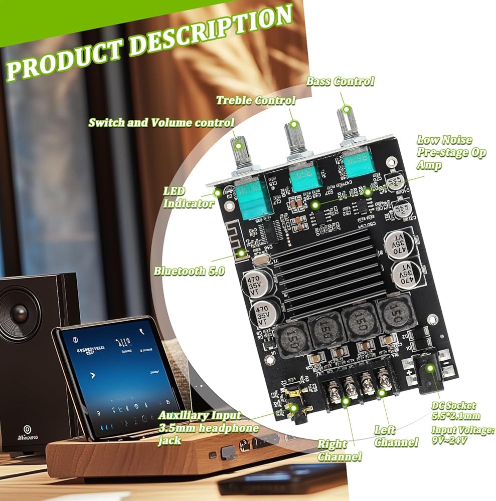 EPLZON 100W+100W Bluetooth Amplifier Board with Treble and Bass Control