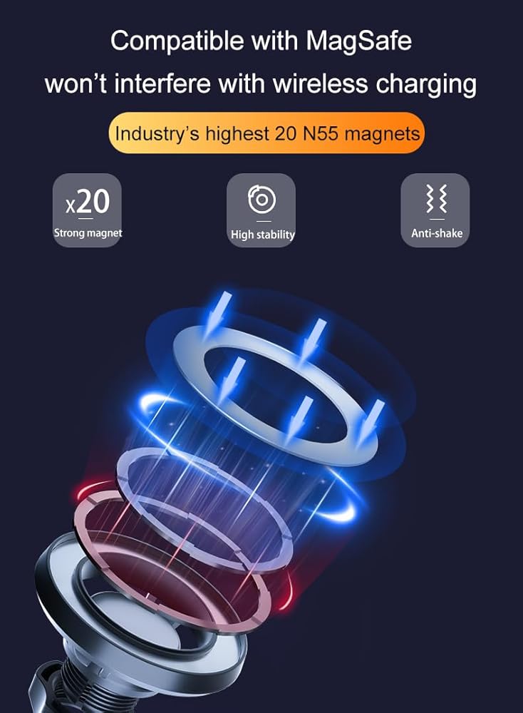 【Strongest N55 Magnets】 Jeep Compass phone holder with more stronger 20pcs N55 magnets, can even hold up to 17 smartphones securely. The closed magnet field won't interfere with your phone signal, so you can use navigation or other functions normally. Powerful magnetic attraction can firmly attach the phone to the phone holder, Even on extremely rough roads, it will never fall off and break.