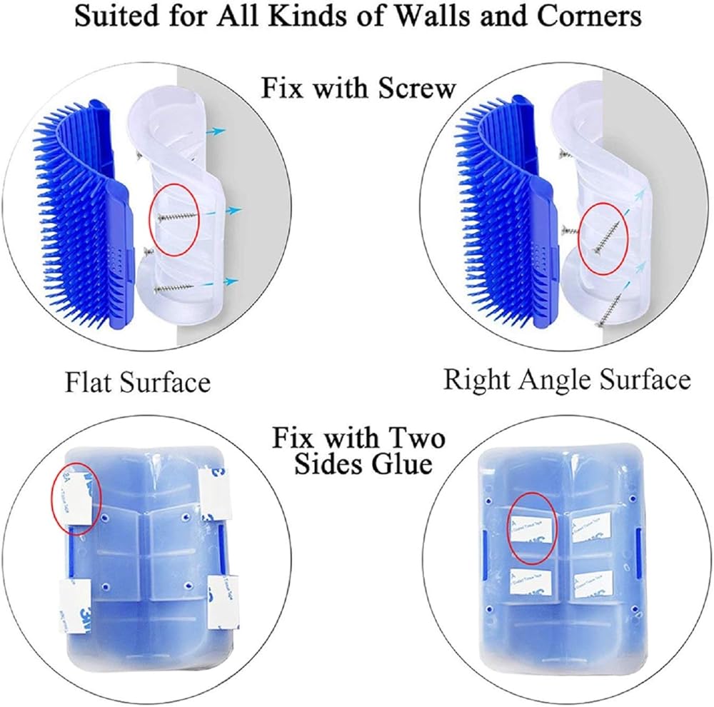 🌻 Easy to Installed - It is almost fitting all wall corners, table legs and cabinet corners. Can be easily mounted on either flat surfaces or corners with double-sided stickers or screws. The outer package of our grooming brush has shown you the installation steps, please read it before installing. (The double-sided stickers will not be sticky sometime, please heat them before use by the hairdryer.)