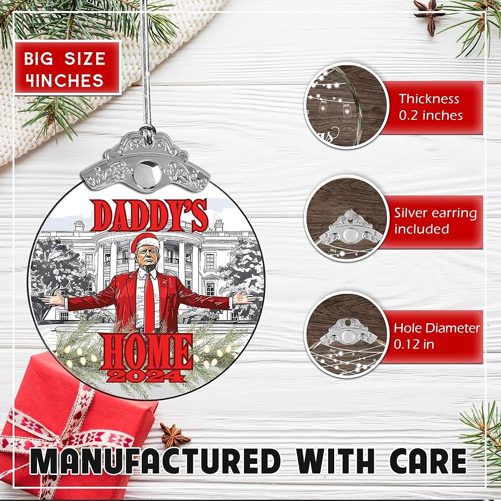 High-Quality Acrylic Material: Made from premium acrylic, this Trump Christmas Ornament 2024 offers durability and a sleek, polished look, perfect for any Christmas tree decoration.