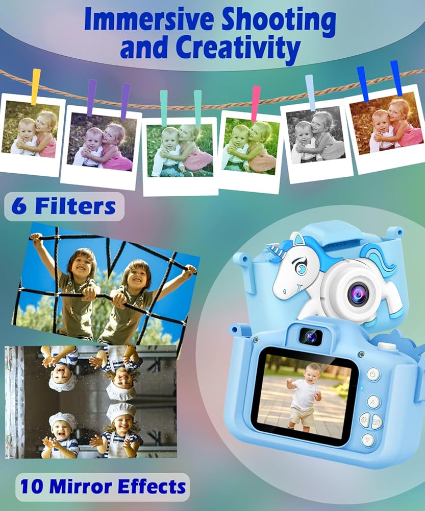 Unleash Creativity with Our Kids Camera: Elevate the excitement with this captivating -themed camera designed for young shutterbugs. An ideal birthday gift, Easter surprise, or Christmas present, this enchanting camera is tailored for kids aged 3-12. Unleash their imagination and ensure a memorable parent-child connection with this delightful gadget.