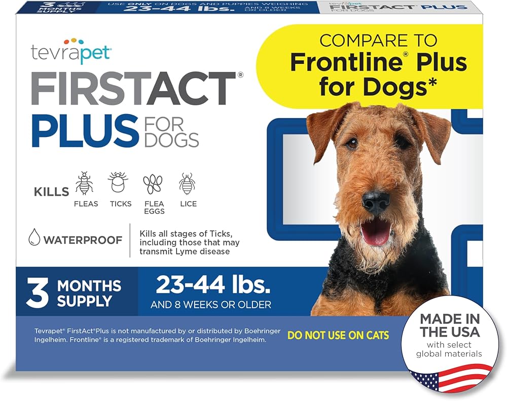 FirstAct Plus Flea Treatment for Dogs, Medium Dogs 23-44 lbs, 3 Doses, Same Active Ingredients as Frontline Plus Flea and Tick Prevention for Dogs