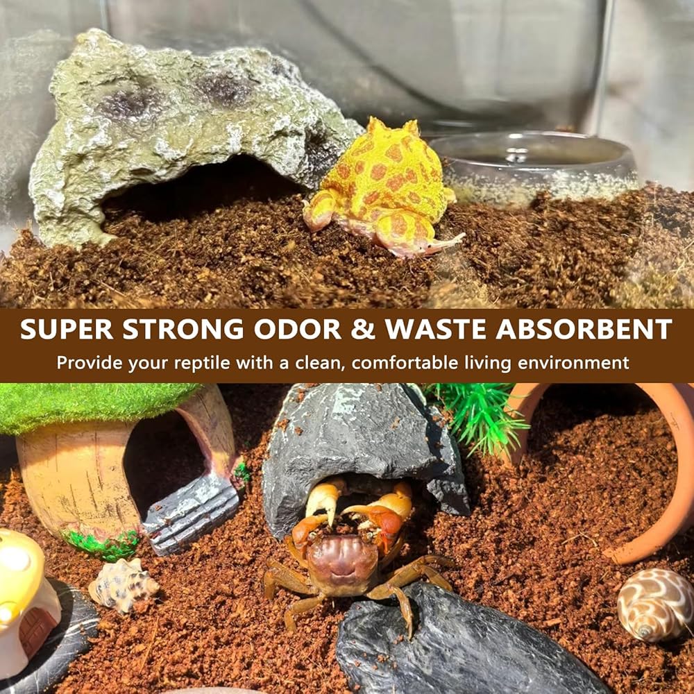 【Imitate the natural environment】Reptile soil substrate maintains humidity well and stimulates the natural digging behavior of small animals, providing a cleaner and healthier living environment for reptiles.