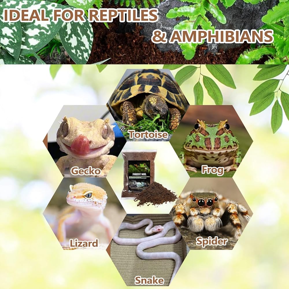 【High quality soil 】Our reptile soil substrate is scientifically processed to decompose liquid, waste, and reptile excrement, enhancing the pet's resistance. It can be used as bedding substrate in reptile enclosures or for incubating turtle eggs.