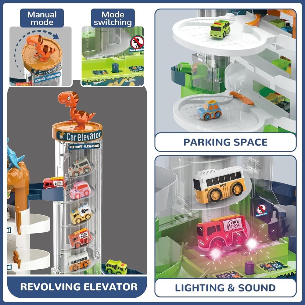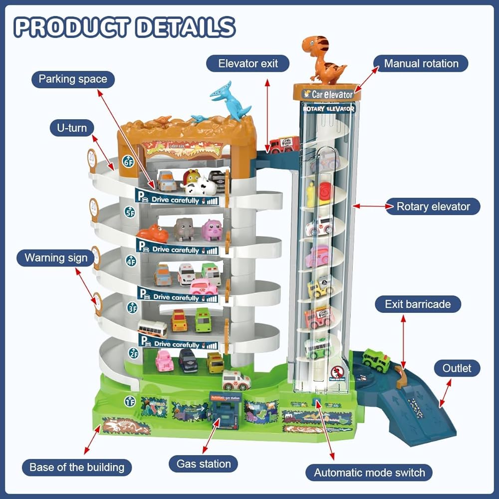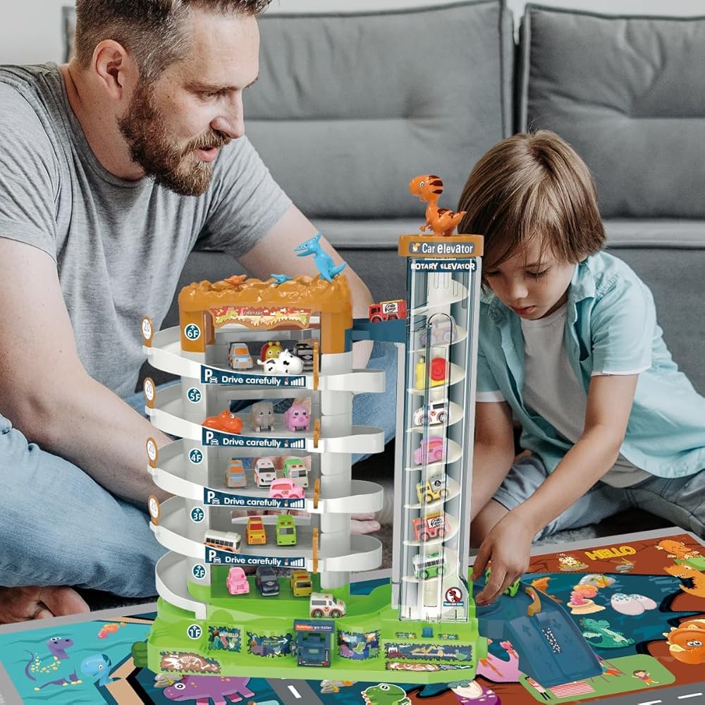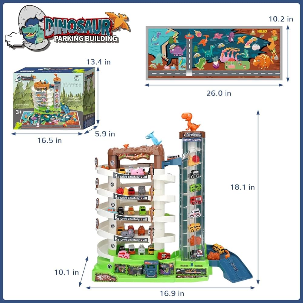 Trusted Material - Crafted from high-quality ABS material, our dinosaur parking garage toy is designed with rounded edges and no sharp burrs, ensuring durability and safety during playtime. The eye-catching colors are not only visually appealing but also captivating enough to keep your little ones engaged for hours of imaginative fun