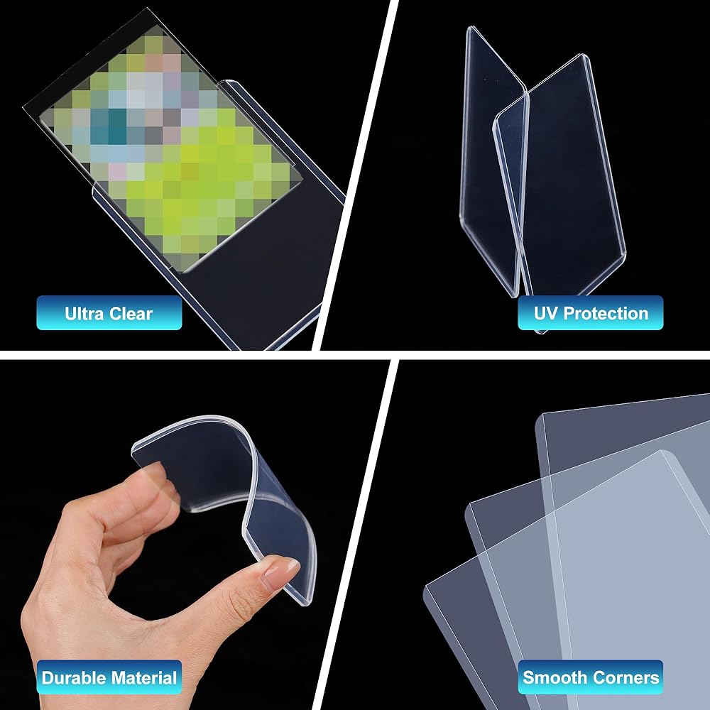 【HIGH QUALITY MATERIAL】Hard card sleeves are made of high quality PVC material, strong and unbreakable, can be slightly bent. Clear card protector sleeves make it easy to identify collectible cards.