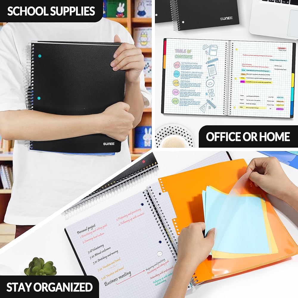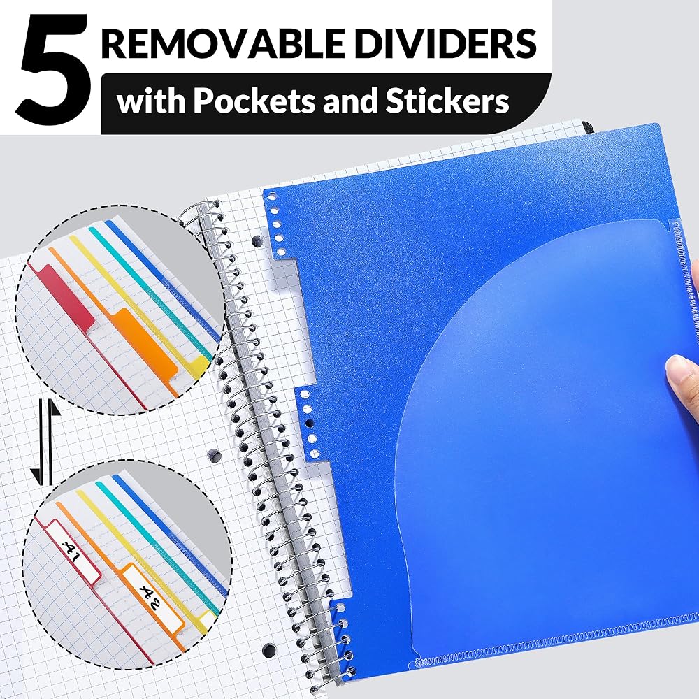 5 MOVABLE DIVIDERS WITH TABS: Easy to use school supplies for high school students because the colored dividers can be moved to accommodate a section that maybe needs more paper or turn itself to 3 subject notebook or 1 subject notebook as you like. The extra tabs provided help you mark and identify your subjects quickly. Moreover, You could put small things in the pocket built-in every divider, such as favorite stickers, small brochures, flashcards, etc.