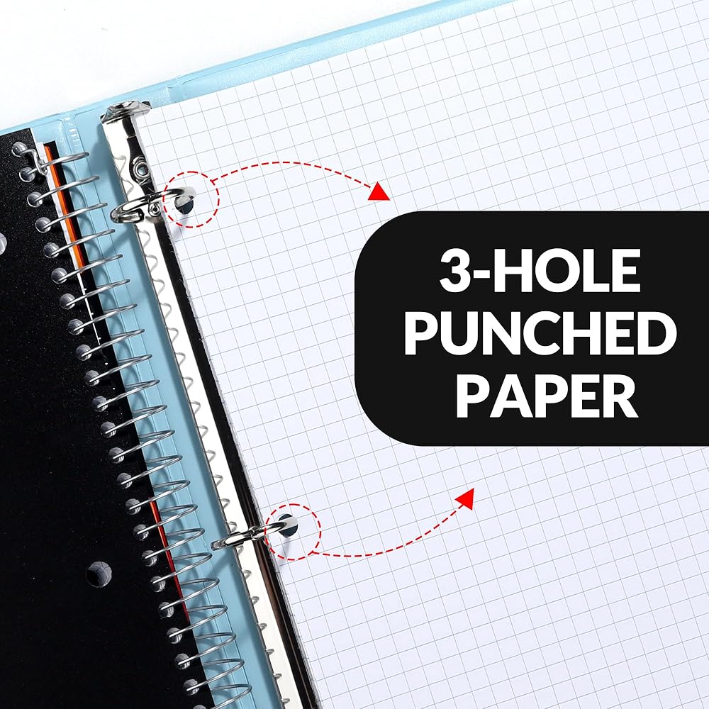 PERFORATED PAPER & FIT FOR 3 RING BINDER: Quite easy to detach the pages from the spiral bound notebook along perforated lines with clean edges but not tear the whole paper and the tear-out sheet is 11" x 8.5". Every college ruled notebook for work comes 3-hole punched for transferring to a standard binder (or to turn in as part of an assignment). Perfect choice school supplies for college students!