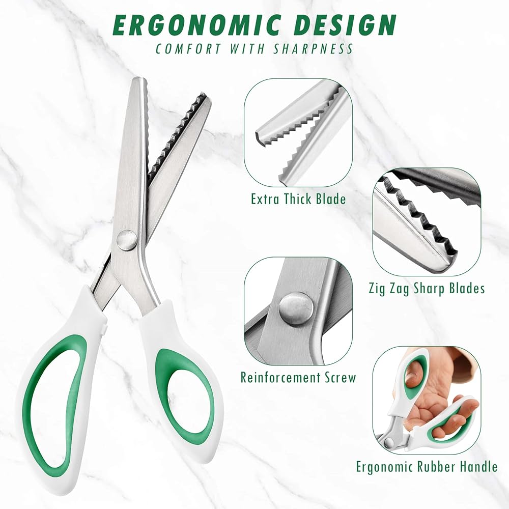 Premium Material: This Sewing Pinking Shears is made of high-quality PP and stainless steel materials, ensuring sharpness and durability of the blades, and providing a comfortable user experience.