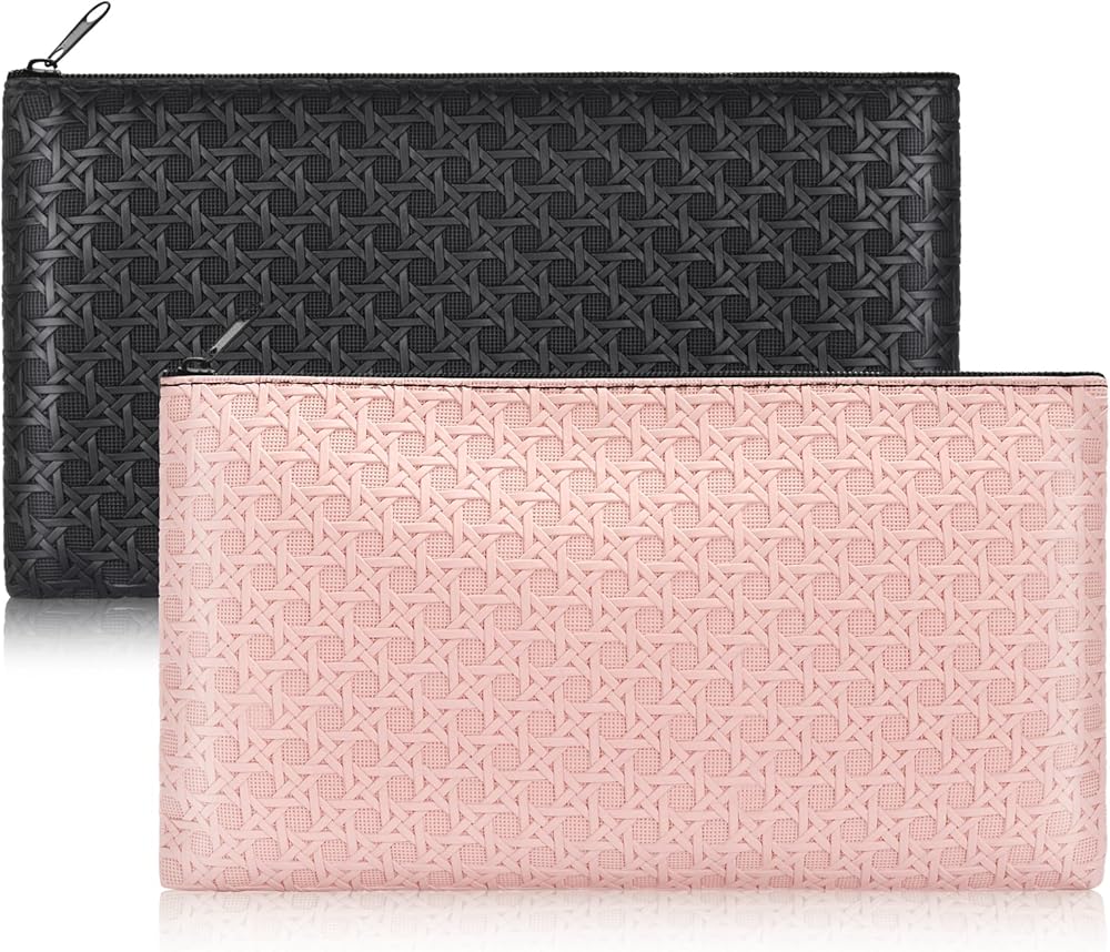 1. Convenient Package: This set includes 2 leather bags in 2 stylish colors with black zippers, The compact size makes it easy to carry and a perfect companion for daily use and travel