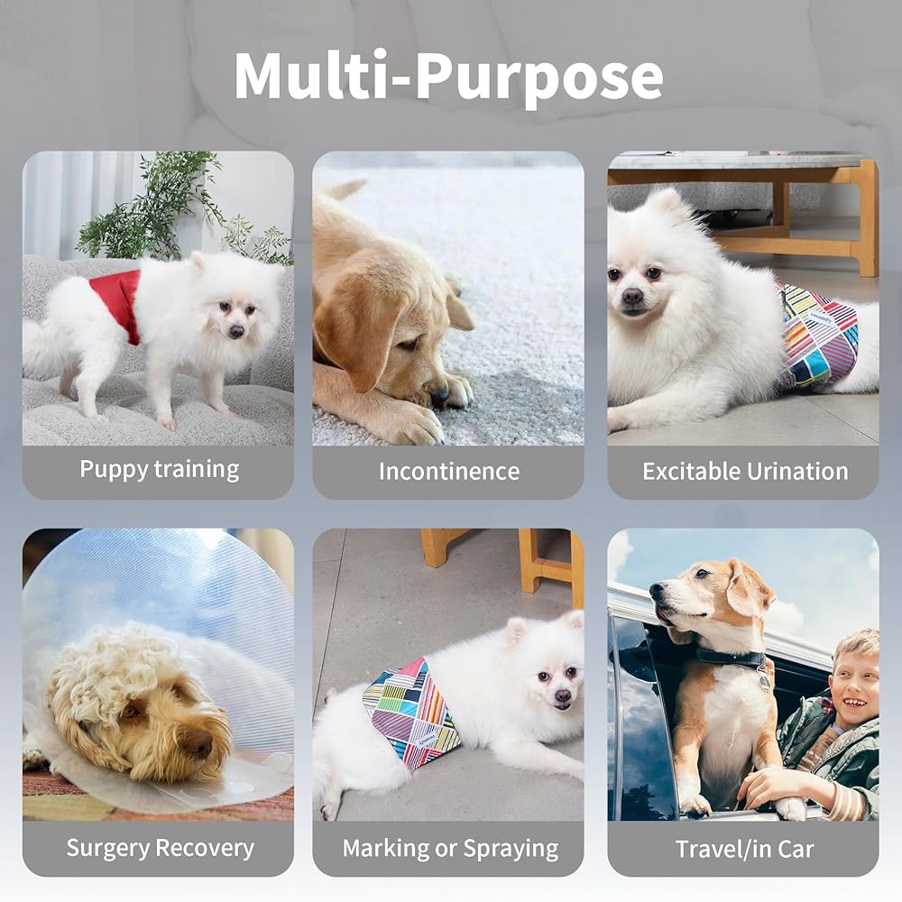 (Pack of 5),Size(M:13"-15.9"waist),best for small medium male dogs; we definitely advise measuring your dog's waist in front of the back legs(above the penis),to ensure a good fit before ordering it, Don't be too tight when measuring.
