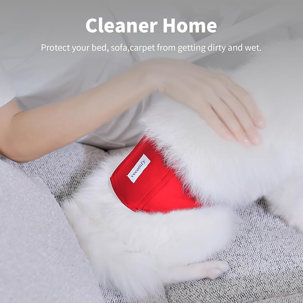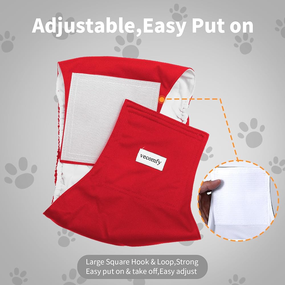 Large square hook & loop with double stitching,durable and last long time,easy put on and take off dog wrap ,Adjustable dog's waist girth.