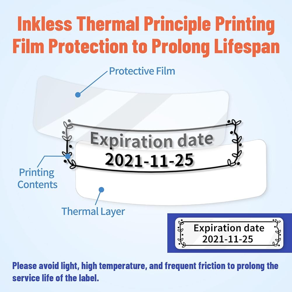 No Residue Left - D30 thermal label is designed with strong self adhesion. When pasting, no glue or double-sided tape needed. After peel it off, no annoying residue left on the paste surface