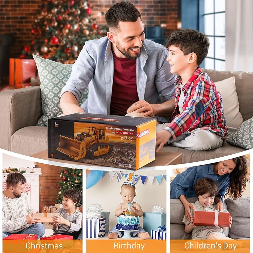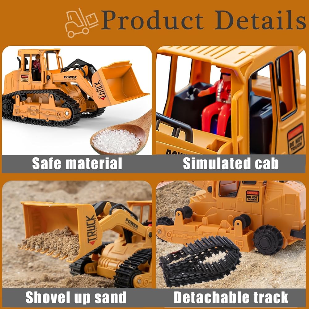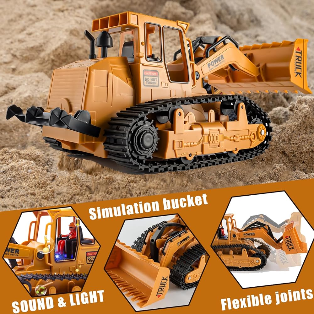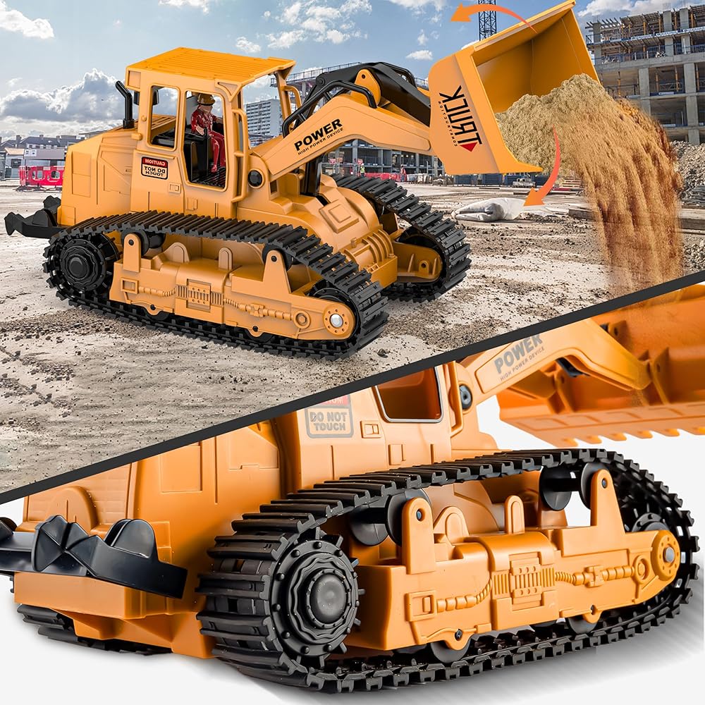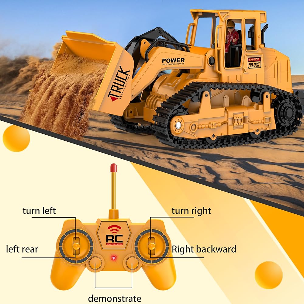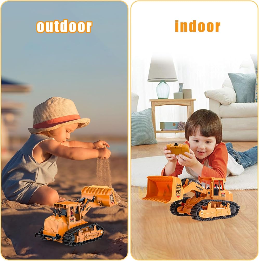 Construction Toys Bulldozer - Kids Engineering Remote Control Truck Toy, Rechargeable Multifunction Vehicle Loader Beach Outdoor Toy, Christmas Birthday Idea for 3 4 5 6 Year Old Toddler Boys Children