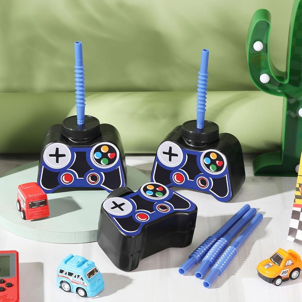 Safe Material: video gaming handle cups with straws are made of plastic material, reliable, lightweight but sturdy, easy to clean, and hard to break, which can be repeatedly applied; Please note that it is not recommended to use dishwasher