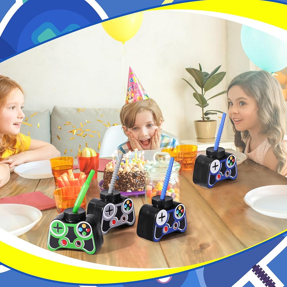 Easy to Drink: each video gaming party favor cup measures about 3.4 x 2.2 x 4.3 inches, the capacity is about 10 oz, coming with a straw and lid for easy use; The straw is about 7 inches and long enough to reach the bottom of the cup, which allows kids and adults to easily finish the water or drink in the cup without wasting or spilling