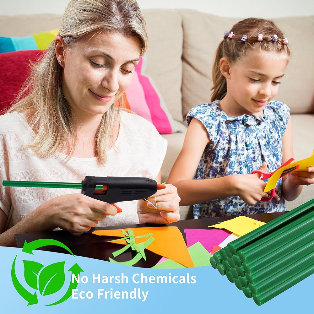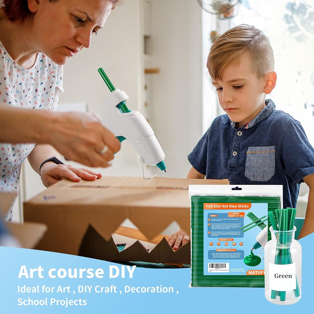 【Value Pack】52 pcs green hot glue Sticks Full Size, 11mm/0.43 inch diameter and 200mm/8 inch Length, Long hot glue sticks smooth operation, No need to change glue sticks Frequently, for variety holiday decorations, crafts, arts creation gluing projects and most repair use