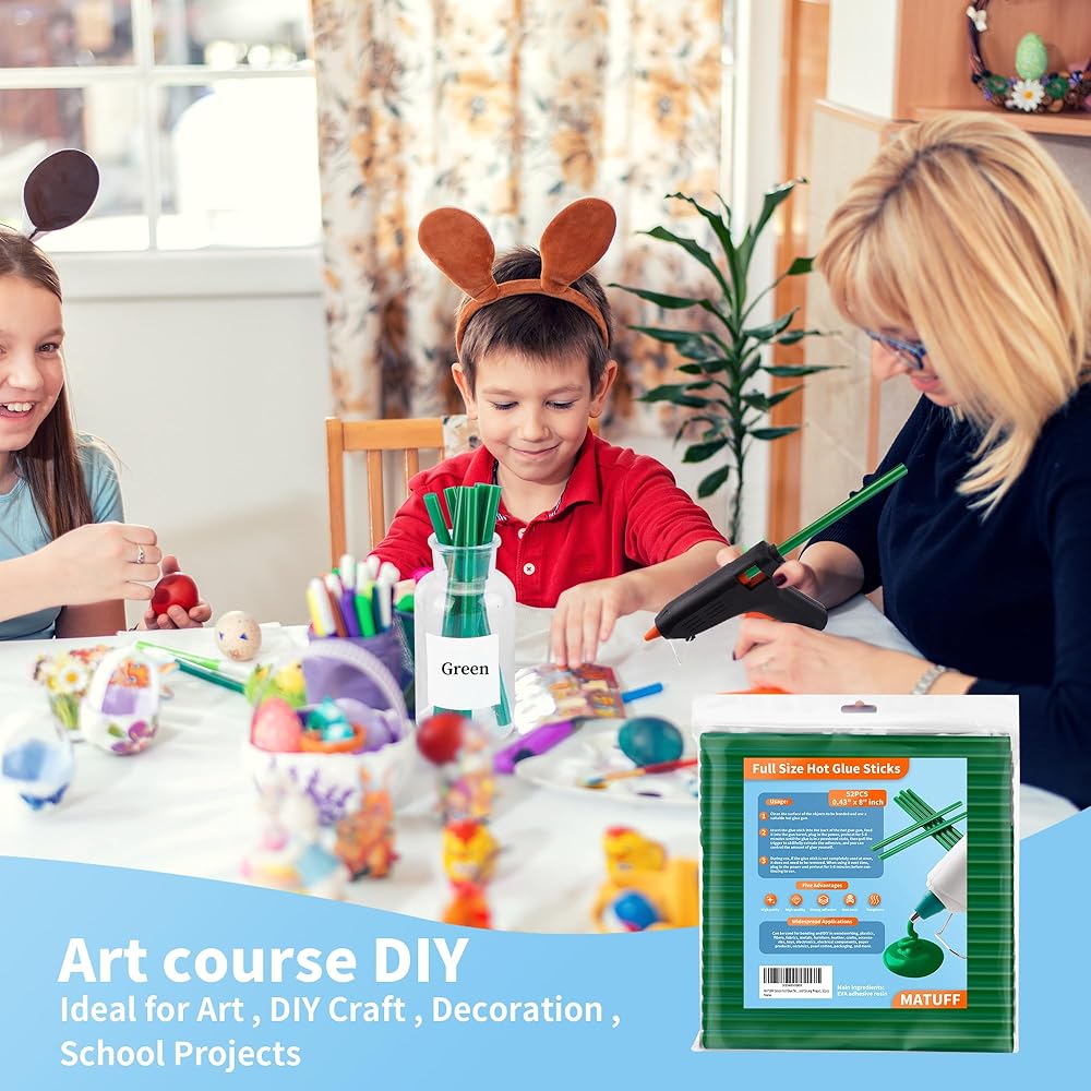 Green hot Glue Sticks Full Size 0.43" Dia x 8" Long, 52 pcs Hot melt Adhesive Glue Sticks, All-Purpose Colored Glue Gun Sticks for Christmas Decoration DIY Crafts Arts School Repair Bonding