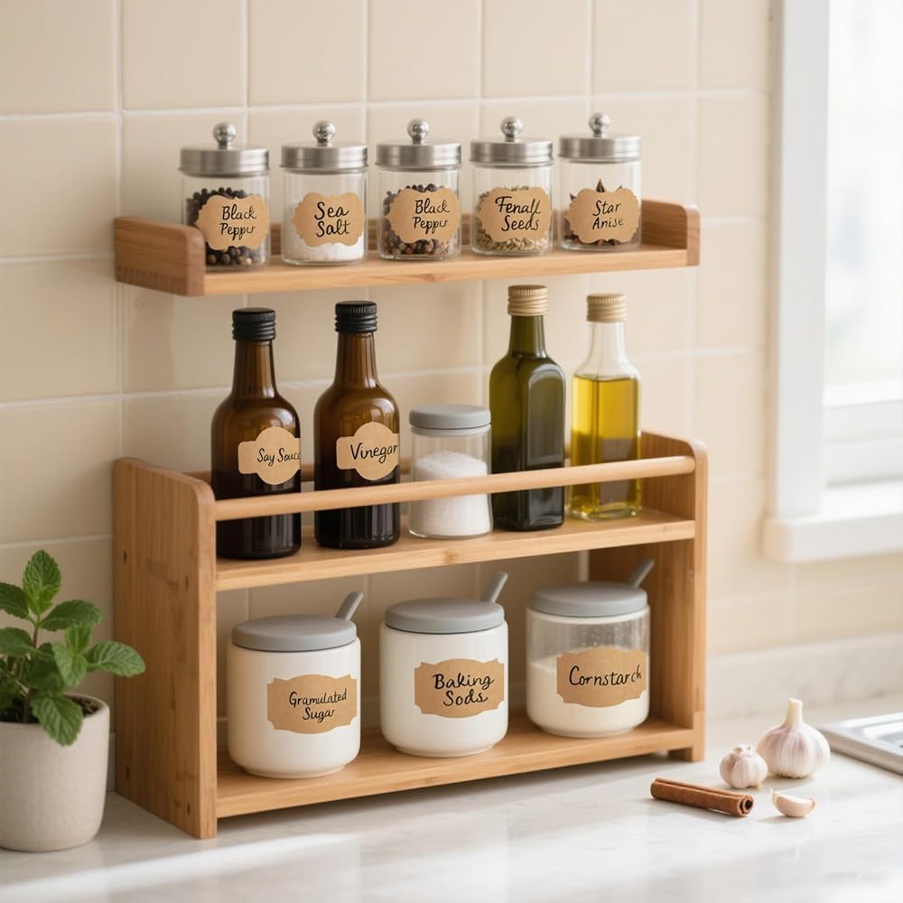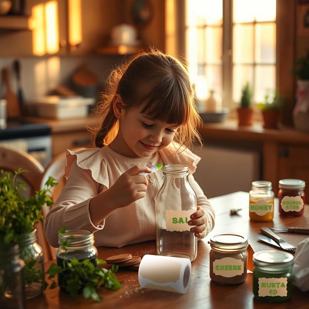WIDE APPLICATIONS - Our kraft labels can be perfectly used on food cans, spice jars, pantry storage bins, gift wrap, coffee canisters, scrapebook, thank you cards, DIY creations etc. You also can stick it to fabric or apparel without any stains or residues.