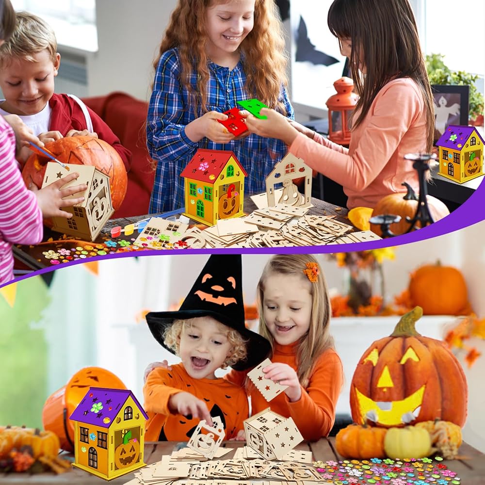 Easy to Use : Kids can easily assemble the Christmas house craft for kids by slotting wooden pieces together and then DIY coloring and decoration use paint and rhinestone sticker, boys and girls will love making and then decorating Fall parties celebrations with our Fall house kits. Our kit is simple and will entertain creative kids this Christmas