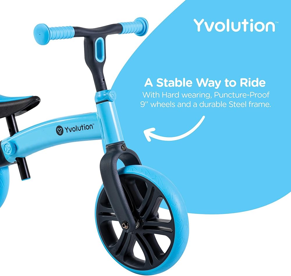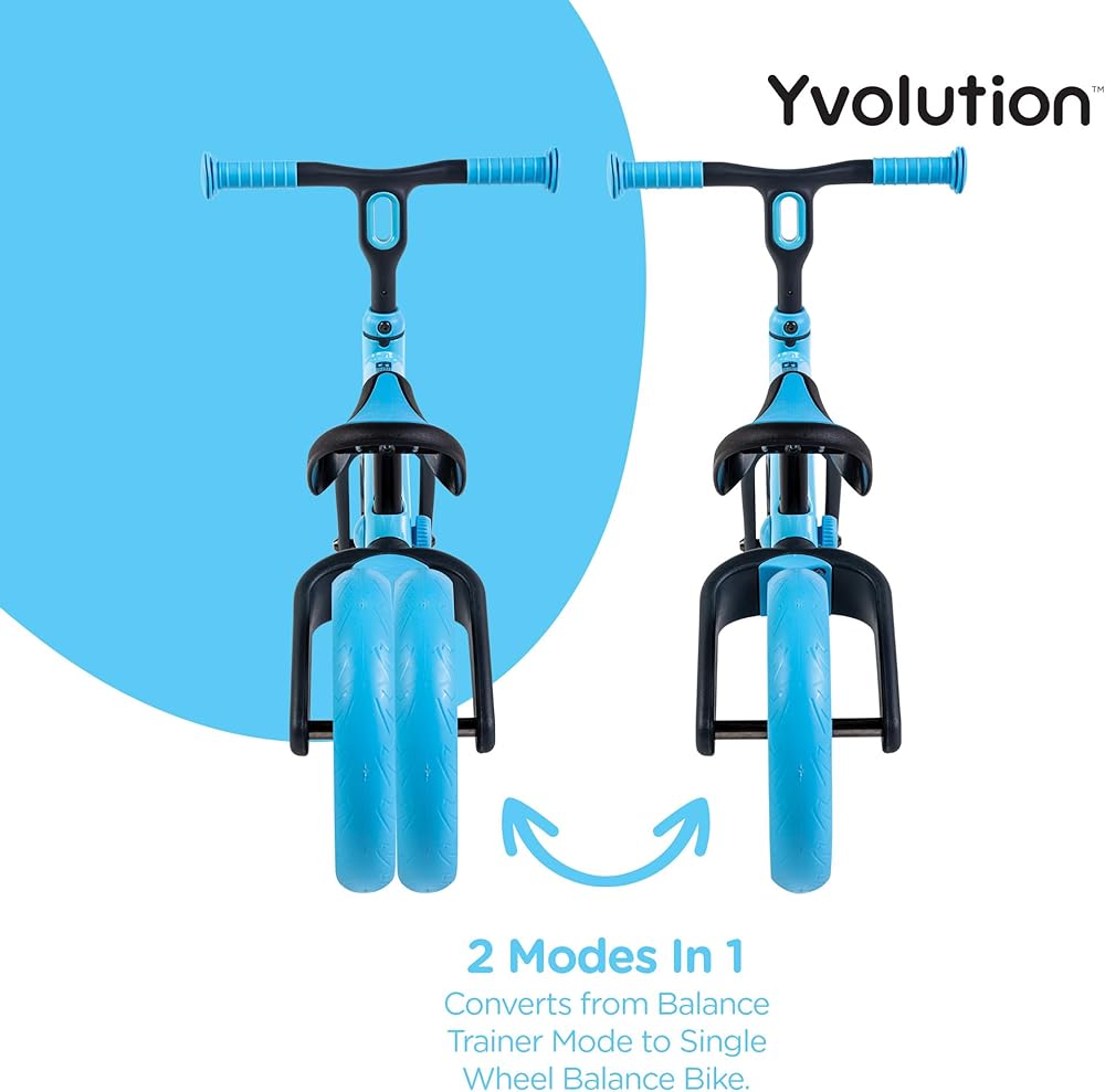 Yvolution Y Velo Junior 9" Balance Bike – 2-in-1 No-Pedal Training Bicycle with Dual Rear Wheels, Adjustable Seat & Handlebar – Ages 18 months to 3 years, Max Weight 44 lbs