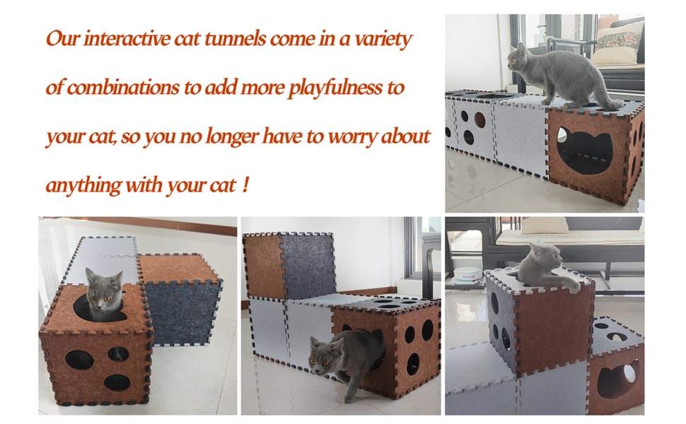 Best Ways To Play: Our Transformable cat tunnel with composed of 3 separate cat cubes, various shapes can be formed. The unique deformation design brings additional level of agility, this popular cat toy gives your kitty more ways to have fun. Provides hours of exercise & self-amusement.