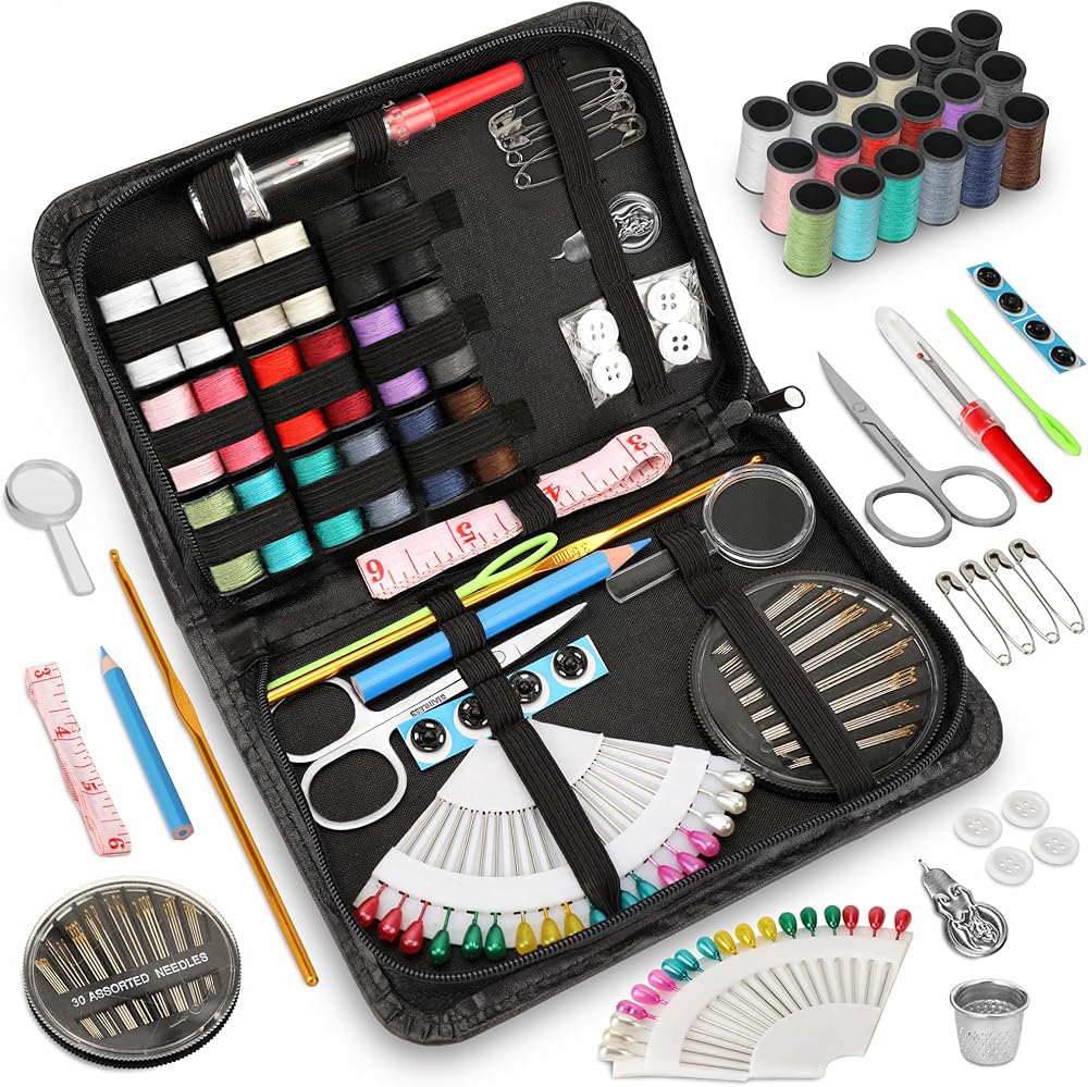 【FULLY EQUIPPED SEWING KIT】Our beginner sewing kit includes over 205 sewing accessories. The hand sewing kit includes sewing thread, seam ripper, scissors, needles, seam ripper, pin cushion, tape ruler, measuring tape, many buttons and other sewing accessories - all neatly packaged