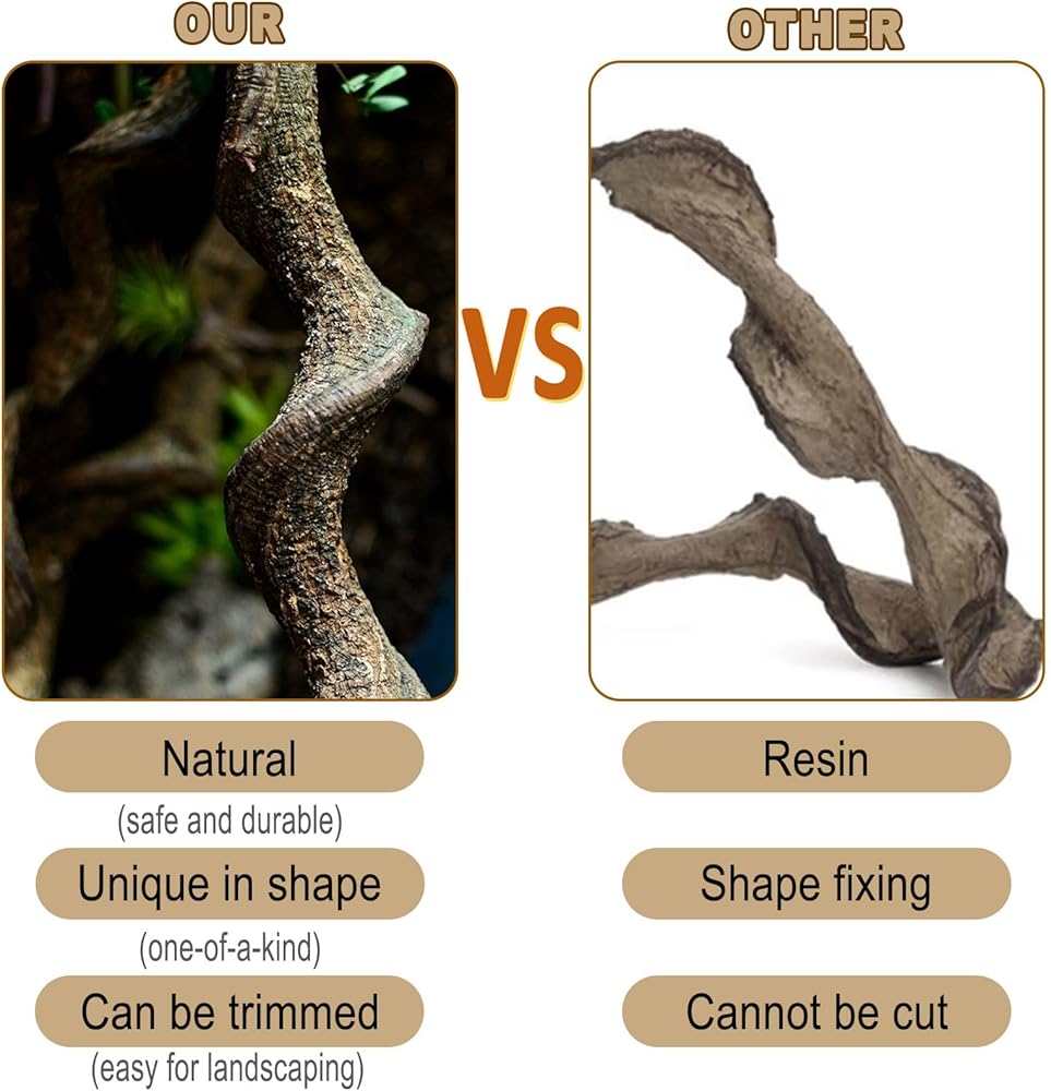 【Unique Reptile Branch Decoration】This reptile branch decoration is made from natural vine branches. These vine branches mostly grow in mountainous jungles, often winding around other large trees, resulting in each branch having a unique shape from various angles due to natural growth variations. Each branch has a distinct shape, making them one-of-a-kind.