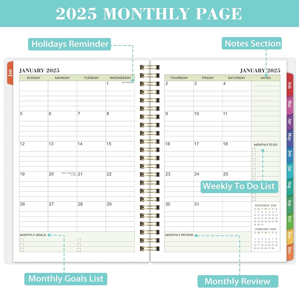 2025 Planner - The planner 2025 date from JAN 2025 to DEC 2025, size about 8.5''x 6.4'', including 12 months of weekly and monthly pages, it's convenient to take in a school bag or handbag, suitable for scheduling for your school year.