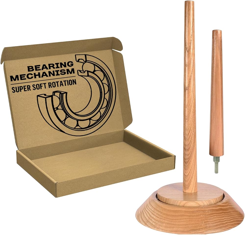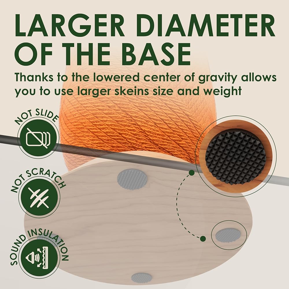 BARVA Yarn Holder Set 22 Lb Capacity for Chunky Yarn w/Extra Spindle | Smooth Bearing Spinner & Big Rubber Anti Slip Pads for Stability | European Wood Crochet Accessories & Fiber Crafts Pro Tools