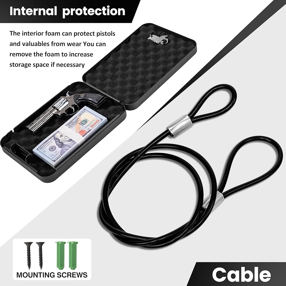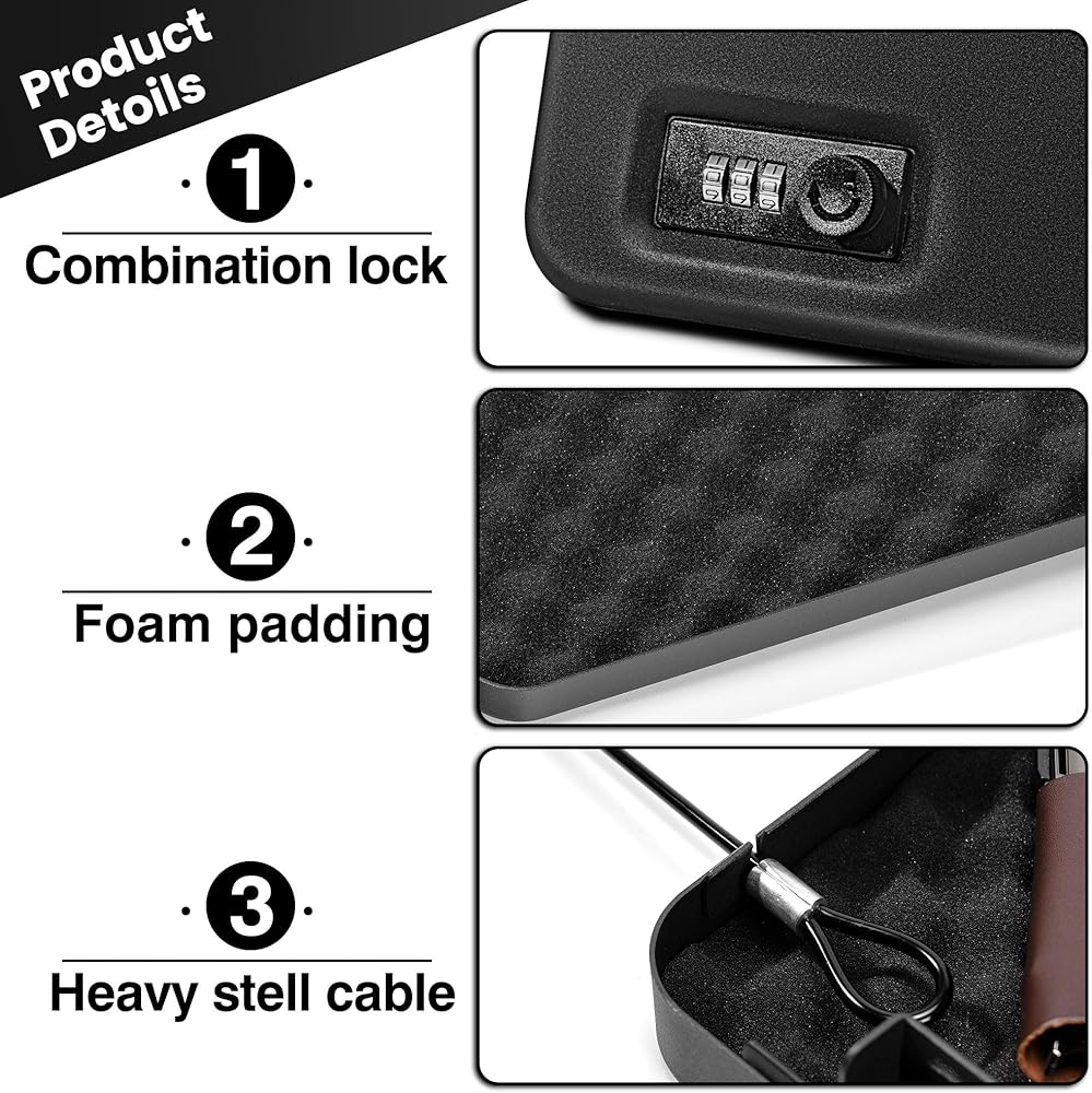 【Steel Cable for Fixing】The sgorlds gun safe comes with a heavy-duty cable wrapped to lock the safe to the seat or wherever. It is especially suitable for keeping guns away from children! The pistol case to a fixed object which out of the reach of children, please loop the cable around the object and place the cable's end into the notch on the side of the case.