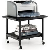 Tangkula Printer Stand with Storage, Under Desk Printer Table with 4 Wheels & Locking Mechanism, 2-Tier Rolling End Table Storage Rack for Bedroom, Living Room, Study