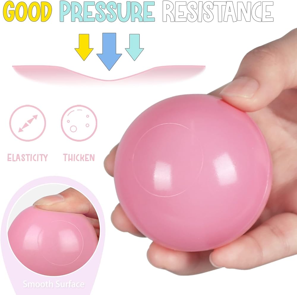 - Crush Proof Plastic Ball -- Each play ball can withstand more than 100 pounds of pressure, strong enough for adults and soft enough for toddlers