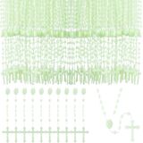 The plastic rosary necklace are with 10 colors, including red, yellow, green, blue, purple, black, white, white, pink and rose red while the white and green color rosary beads catholic necklaces can glow in the dark.