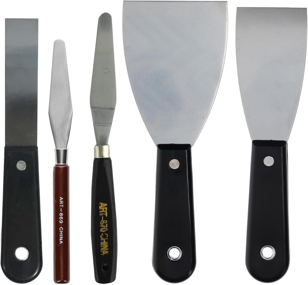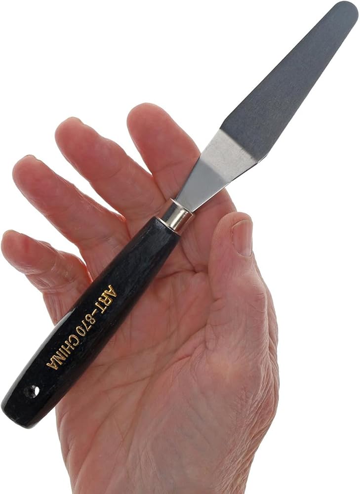 - Flat blade palette knife constructed of selected, high grade flexible steel. It has the strength to mix and lift color without snapping.