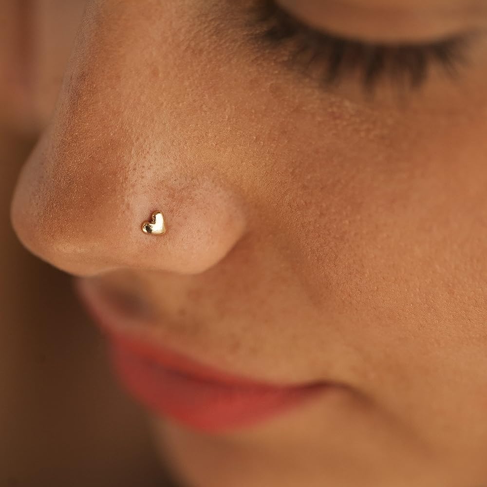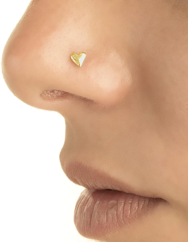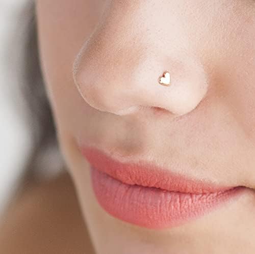 SINGLE EARRING - Unique Heart 14K Solid Rose Gold Nose / Ear Piercing Stud - Screw Shape, Gauge: 20g (0.8 mm) - fits a variety of piercing locations.