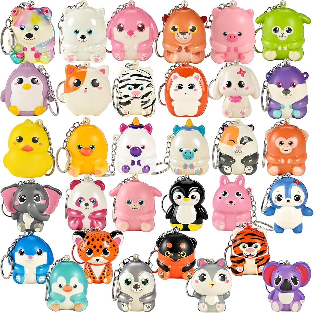 1. FUN PARTY FAVORS FOR KIDS - Our beautiful gift box contains 32 slow rise squishies toys with keychains, carefully selected for children's hands training and finger dexterity. Give the perfect party favor assortment that benefits children's memory and learning.