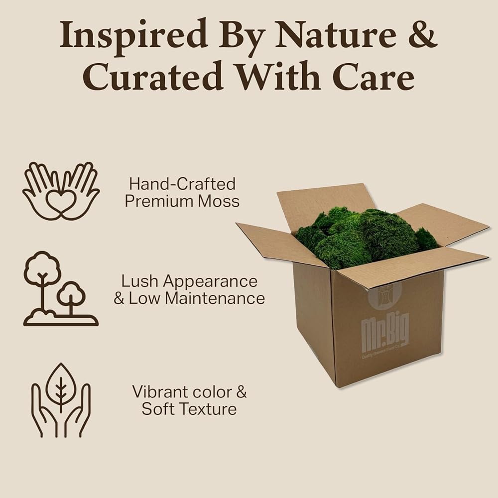 Sourced from the heart of pristine environments, our Preserved Mood Moss undergoes a meticulous preservation process, locking in its lush green hues and delicate texture. Each piece is preserved with precision, guaranteeing a uniform and luxurious appearance throughout its lifespan. Our Preserved Mood Moss is perfect to use when creating a moss wall to serve as natural, textural backdrops wherever you'd like. Use it as a centerpiece, hanging sculpture, a way to bring landscapes to life in terrariums, or as elegant home decor accents. The natural texture and color can contribute to creating visually appealing and authentic scenes. Preserved Mood Moss is perfect for creating moss walls, artistic installations, terrariums and dioramas, retail displays, home decor accents, and so much more. The pliable nature of our Preserved Mood Moss makes it easy to incorporate into your creative endeavors. Our Preserved Mood Moss does not require soil or water, making it an ideal choice for low-maintenance and long-lasting decorative applications. We prioritize protecting the environment and obtaining our products sustainably. In our Preserved Mood Moss, we only use non-toxic, color-enhancing dyes that are safe for indoor use. Quality Growers was founded on recognizing the value of providing the finest and freshest foliage and mosses. Today, we continue to be a leading family-operated botanicals provider, ensuring all of our products are hand selected, inspired by nature, and curated with care.