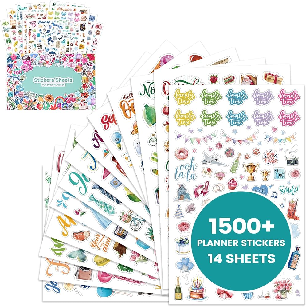 🍎 14 Unique Sticker Sheets: These planner stickers created by our professional designers, include over 1500 stickers with various themes. Whether you want to keep track of your life or decorate your journal, you'll find the sticker you are looking for.
