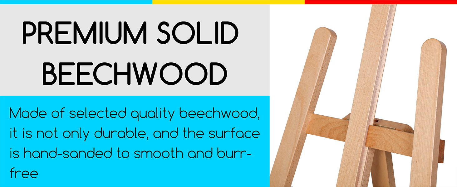 KEEPS YOUR INSPIRATION FLOWING: This painting easel for adults makes a perfect studio easel for your larger pieces of work, holding canvas size max in 43inches. European solid beech wood with delicate polished effet bring your inspiration for higher quality work and improved artistic level.