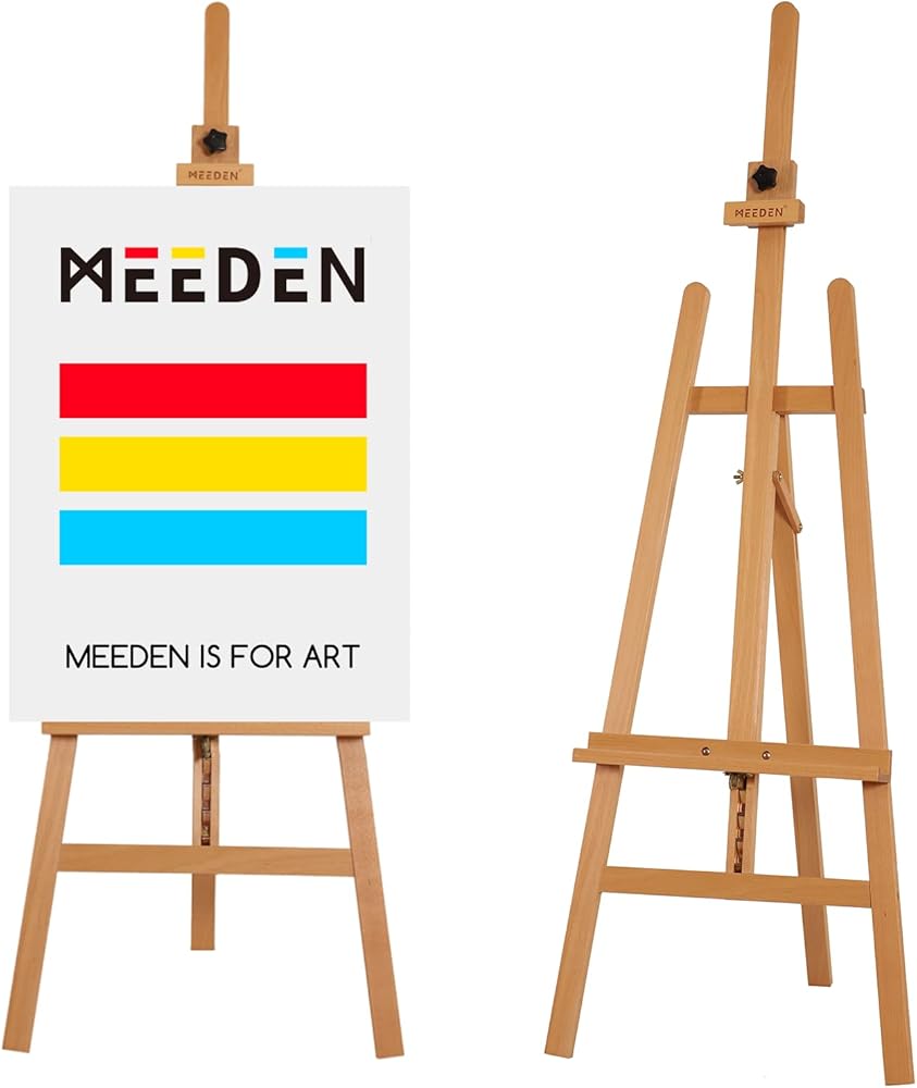 MEEDEN Painting Wooden Art Easel: Solid Beechwood Display Easel Stand Hold Canvas up to 43'' - Adjustable Easel from 57''-76" for Adults Student Studio Gallery - Natural