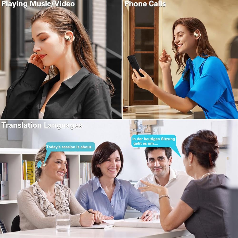 Comfortable Wearing Experience: Translator device with Open Ear design provide a comfortable, no pressure wearing experience for extended periods of time. Experience rich, high-fidelity sound quality while blocking out background noise. The language translator earbuds built-in noise-canceling technology ensures clear sound quality during calls, music and video playback, ideal for translation and entertainment